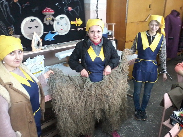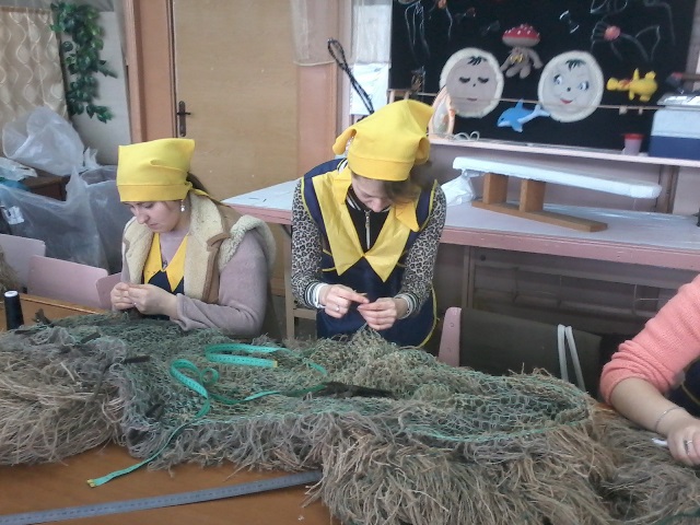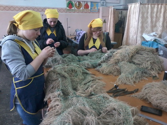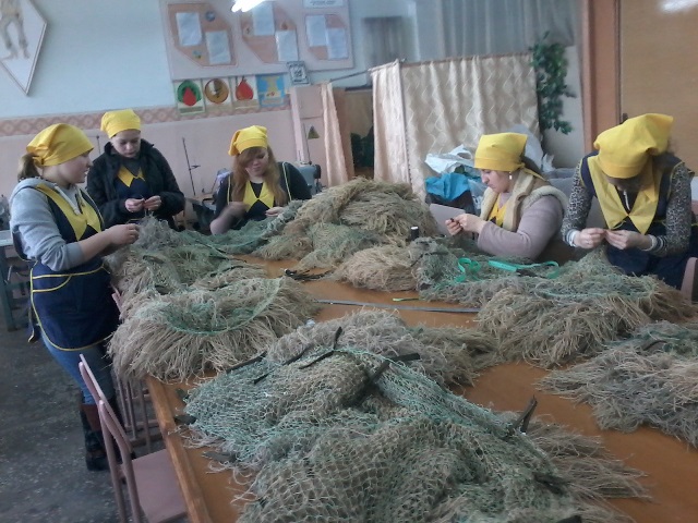 Учениці Хмельницького професійного ліцею групи № 38, які навчаються за професією «Швачка. Кравець», у вільний від навчання час разом із майстрами виробничого навчання Ящишеною С.С. та Мельничук В.В. виготовляли спеціальні маскувальні костюми «кікімори» для розвідників АТО.