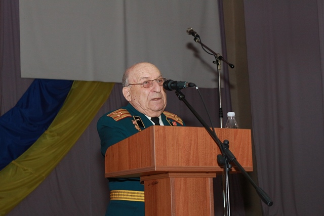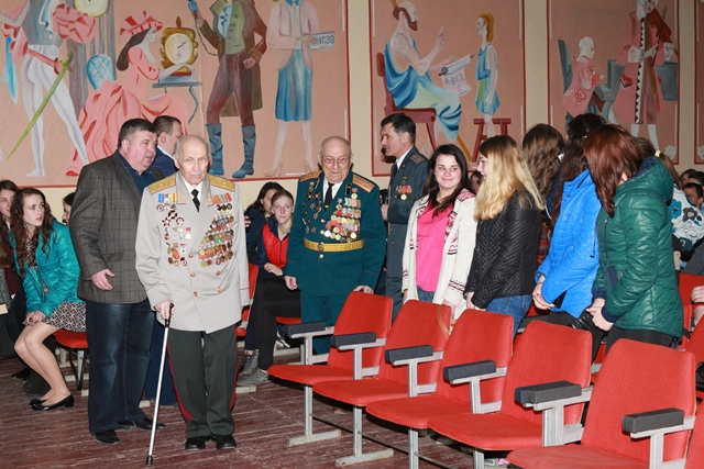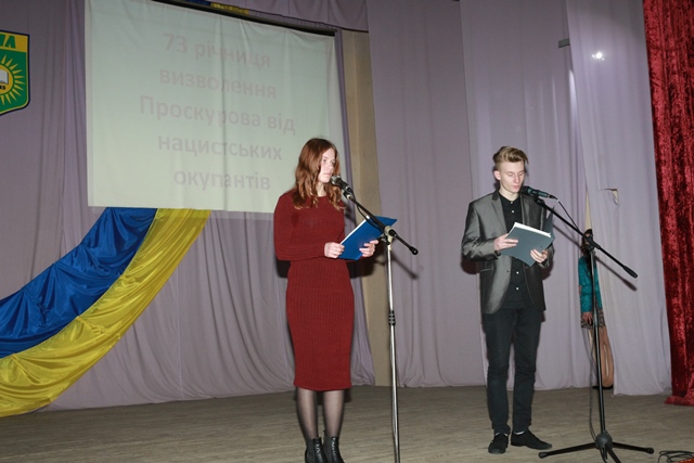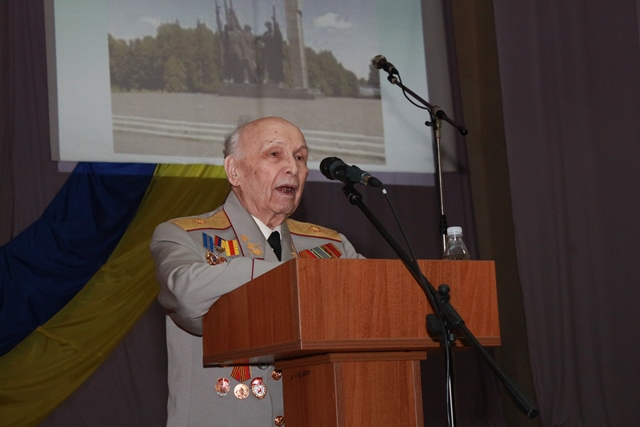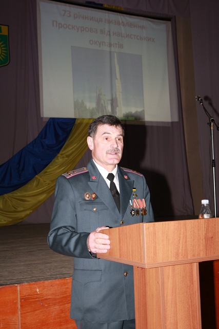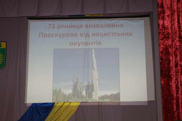 На нашому заході були присутні шановні гості, знані люди не лише в нашому місті, а й в області і державі, ветерани, учасники бойових дій в роки другої світової війни генерал-майора Бабак Іван Іванович, полковник Єлевич Зельман Абрамович, які у своїх спогадах зупинились на окремих епізодах бойових дій ДРУГОЇ СВІТОВОЇ ВІЙНИ в тому числі і на ході проведення стратегічної наступальної Проскурівсько-Чернівецької операції в ході якої 25 березня 1944 року було звільнено м. Проскурів.