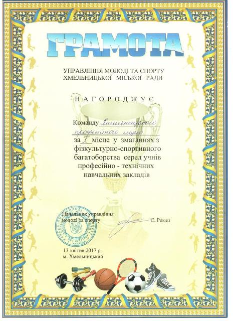 13 квітня 2017 року на Хмельницькому стадіоні «Поділля» відбулися змагання з фізкультурно-спортивного багатоборства.