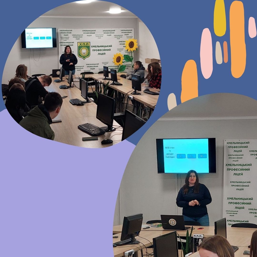Учні виконали практичні вправи для емоційної саморегуляції, які допоможуть стабілізуватися та не розгубитися, ознайомилися, як надавати першу медичну допомогу в стресових ситуаціях. Розглянули фази війни, психологічні травми та стадії людського горя..