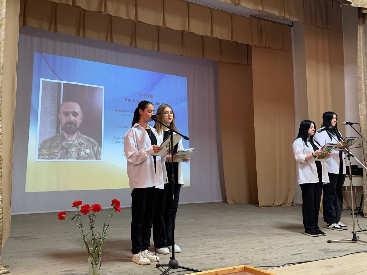 В актовій залі Хмельницького професійного ліцею відбулася виховна година до Дня Героїв України, проведена класним керівником Гер’ятович І.В. та здобувачами освіти групи № 22 «ДЕНЬ ГЕРОЇВ».