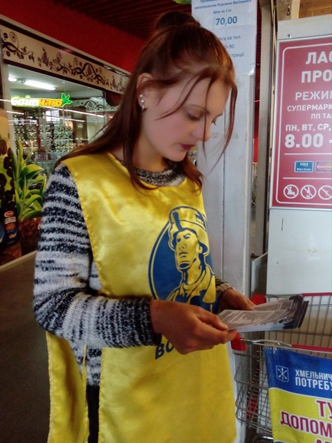 Волонтери Хмельницького професійного ліцею (учні та педагоги) спільно із Обласним Благодійним фондом «Центр Добриня» після уроків, двічі на тиждень приймають участь у зборі продуктів харчування для воїнів АТО у супермаркетах м. Хмельницького «Економ» по вул. Інститутська та «Сільпо» по вул. Пр. Миру.