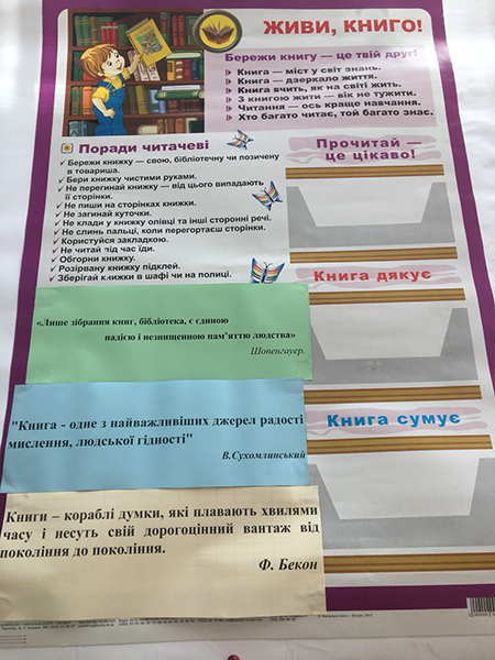 26 вересня у літературній вітальні бібліотеки Хмельницького професійного ліцею відбувся захід, присвячений Всеукраїнському дню бібліотек. Бібліотекар Комісарук Юлія Григорівна розповіла учням 16 групи про книгу як історичну пам’ятку людства та історії її виникнення, учні переглянули відео фрагменти про винайдення книгодрукарства, про історію першого книгодрукаря Івана Федоро