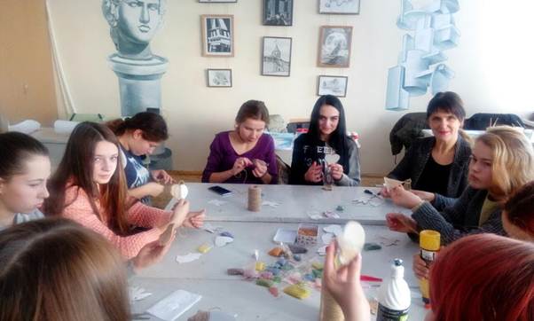 Завершуючи Тиждень професій швейного та художньо-оформлювального профілів, майстром виробничого навчання Галкіною В.І. було проведено майстер-клас для всіх бажаючих «Новорічна іграшка», де всі присутні виконавці могли поринути у новорічну атмосферу та створити свої неповторні прикраси на ялинку.