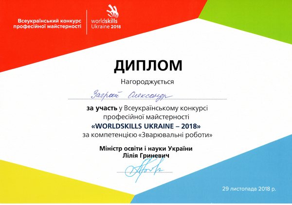 27-29 листопада 2018 року у місті Києві відбувся Всеукраїнський конкурс професійної майстерності «WORLDSKILLS UKRAINE».
