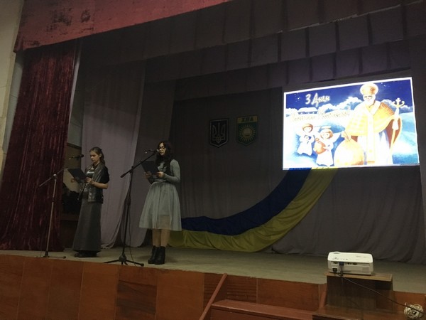 - доброго покровителя і мудрого наставника передусім для учнів - у привітній актовій залі Хмельницького професійного ліцею. Захід провели учні 26 групи під керівництвом класного керівника Комісарук Ю.Г.. Метою заходу було познайомити учнів із традиціями зустрічі святого Миколая, виховувати бажання впроваджувати і оберігати народні звичаї, викликати у учнів бажання творити добро, виховувати почуття любові до традицій рідного краю.