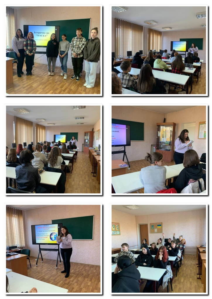 02 листопада в рамках Тижня історії та громадянської освіти викладачкою історії Паламарчук Л.В. між командами груп № 22, 26 було проведено ІСТОРИЧНУ ГРУ "Маска" (впізнай історичну особистість). Команди другокурсників змагалися на вміння злагоджено працювати в команді та використовувати набуті знання. Гра складала із 6 раундів: "Вислів - діяч", "Псевдонім-діяч", "Подія-діяч", "Лідер-діяч", "Жінки-діячі", "Нумізматика".