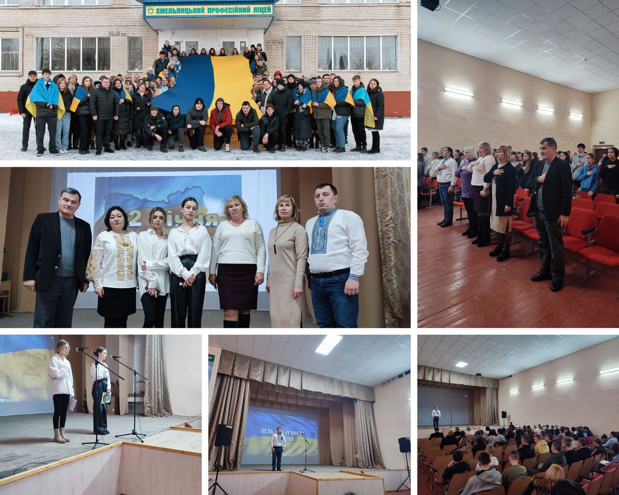 “Наша єдність – наша зброя!" під таким гаслом у Хмельницькому професійному ліцеї відбулася виховна година до Дня Соборності України. Класними керівниками навчальних груп ліцею Дячишеною О.О. та Ткаченком І.О. проведено виховну годину з метою виховування національної свідомості та почуття гідності, любові до рідного краю, його історичного минулого і сучасності, розвитку уваги, пам’яті, виховання патріотів рідної держави.