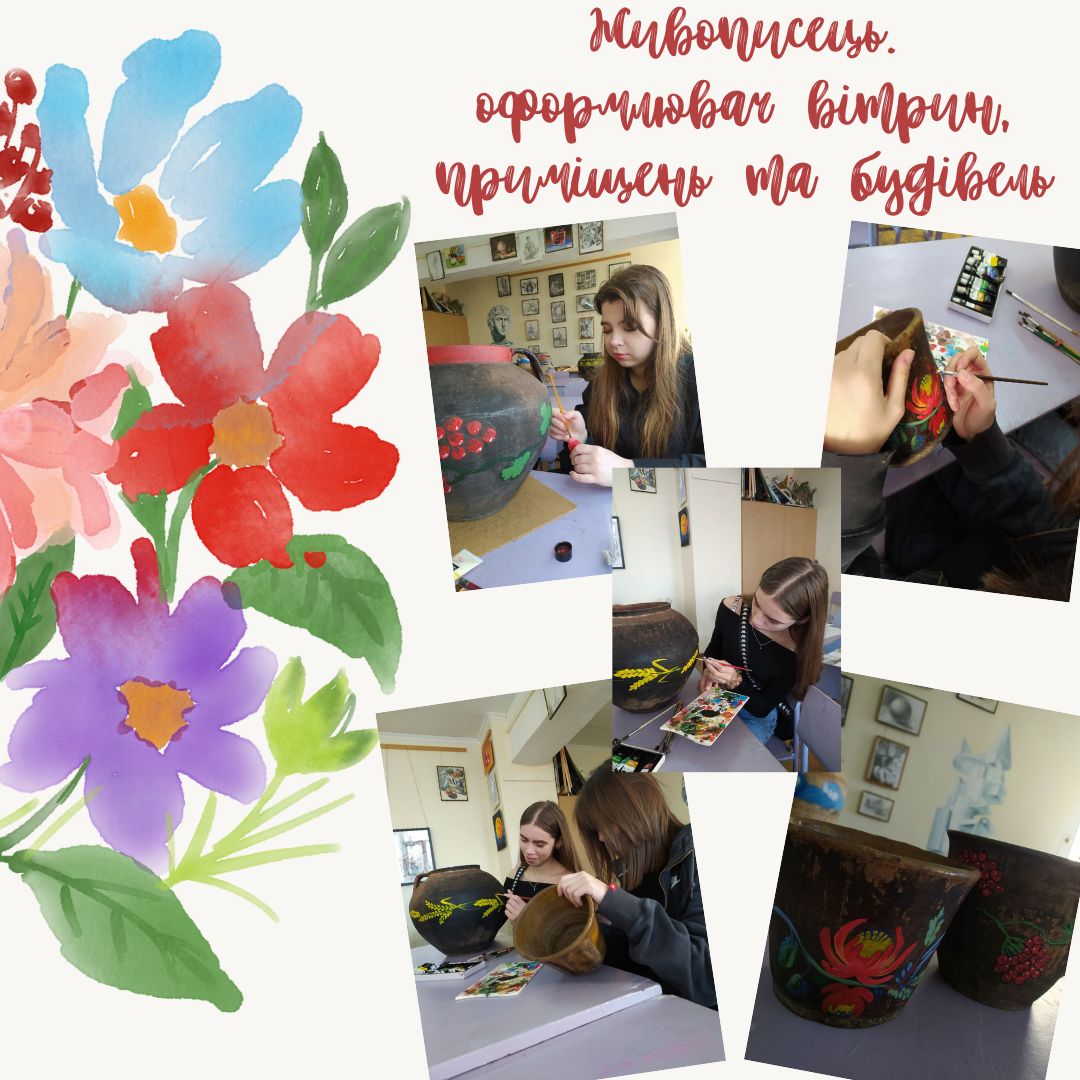 Здобувачі освіти професії «Живописець. Оформлювач вітрин, приміщень та будівель» Хмельницького професійного ліцею під час уроків виробничого навчання розписували глиняний посуд, розкривали почуття рівноваги, декору на площині, творче ставлення до роботи, любов до народної творчості та глибоку шану до надбань попередніх поколінь.